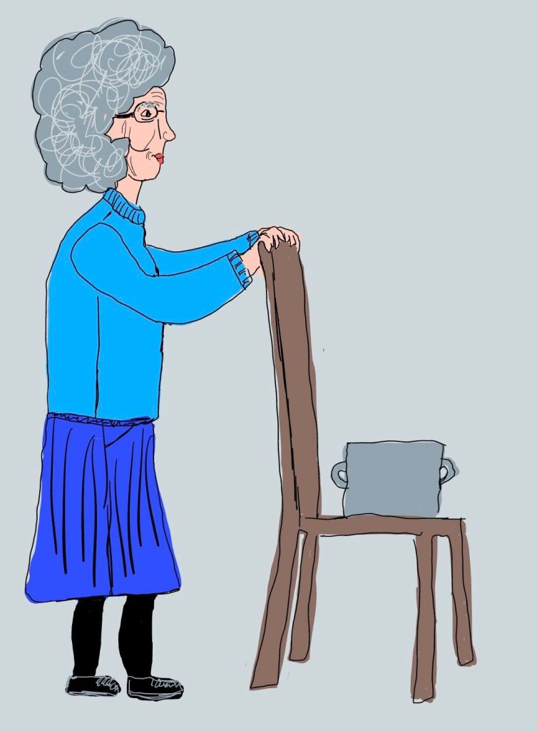 1 bewoner had aardappels geschild en vond hierna de pan te zwaar om naar de keuken te tillen….haar oplossing, ze zette de pan op de loodzware eettafelstoel en heeft die over de antislipvloer meegeschoven naar de keuken…althans..ik onderschepte halverwege want het was erg zwaar en gezien ik net weer binnen kwam lopen ging tillen echt beter.