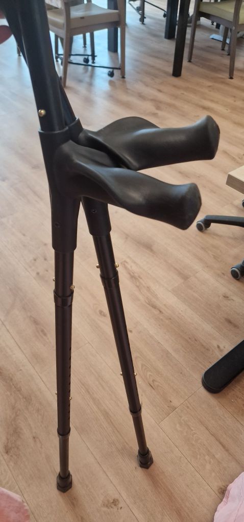 Ondanks dat vandaag toch gewoon gaan werken, krukken opgedoken die ik had liggen voor die momenten die je ze niet wil hebben…. en daar ging ik op de fiets(auto liep ook tegen issues aan dus niet rijdbaar, maar gelukkig gaat deze fiets rijden zodra je begint met trappen dus ik was er zonder moeite).
